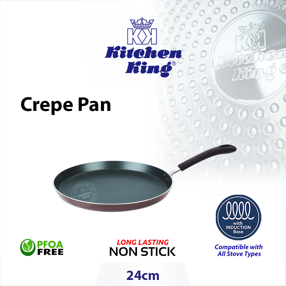 Crepe pan is ideal for making your #1 crepe, tortillas, grill and pancakes. It works smoothly on induction/electric stoves due to its conductive stainless-steel base. A perfect stylish body of our non-stick crepe pan is manufactured from heavy gauge high quality pure aluminium which ensures even heat distribution for better cooking and results in fantastic performance throughout in kitchen. The use of premium 2x layer of non-stick coating (PFOA free) prepares healthier meals without the release of any harmful toxins or fumes and certifies the release of food easily.  The heat-resistant and ergonomic handle with a smooth finish is riveted to give strong grip and luxurious exterior look. Our cookware is suitable for gas and electric glass stovetops. Dishwasher safe but hand-washing is recommended to preserve the appearance of cookware.